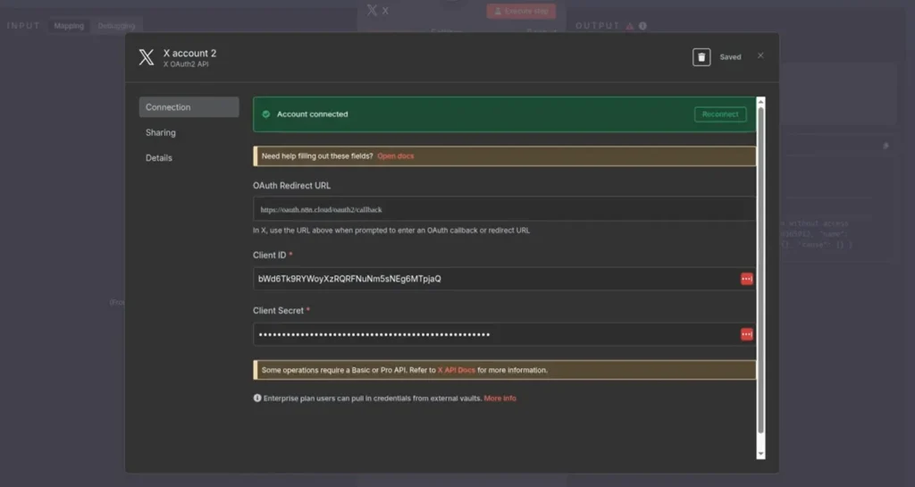 At this stage, your Twitter Developer App is fully configured. Now, move to n8n and complete the connection.
