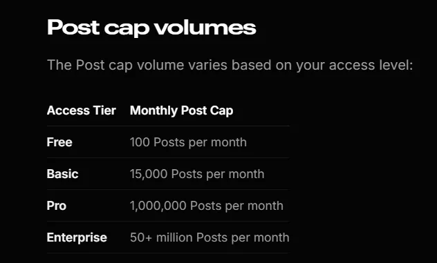 Even after successful integration, automation can break if your app hits Twitter’s rate limits. Since the platform introduced tiered API access (Free, Basic, Pro, and Enterprise), limits vary by subscription.